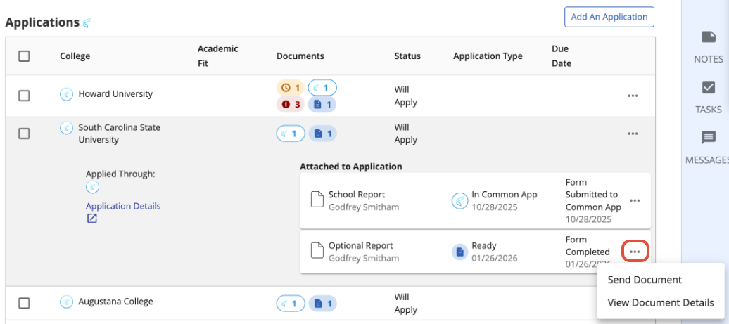 - To send the Optional Report, navigate to the Applications section of the Application Manager. Sending the Optional Report to any single Common App college will send it to all Common App colleges.